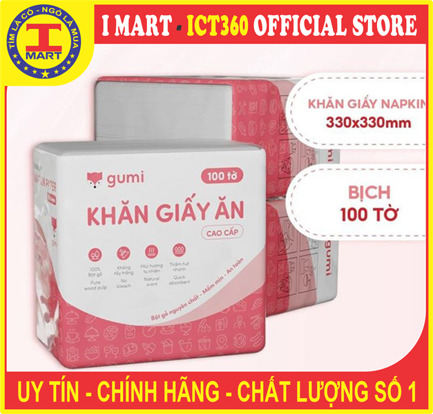 Giấy Ăn Vuông 100 Tờ Gumi cao cấp dành cho nhà hàng, quán ăn, quán cafe,… vô cùng tiện ích. Nếu bạn có nhu cầu nhập số lượng lớn liên hệ ngay để được báo giá chính xác với ưu đãi lớn nhé.