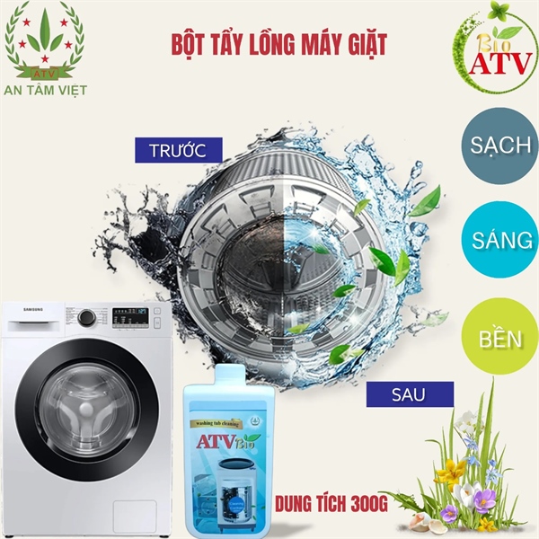 * Cho nước đầy lồng máy, bỏ 3-5 viên tẩy vào, bấm giặt trong vòng 10 phút, luôn đảm bảo mực nước cao trong lồng để chất phân huỷ các cặn bã và vi khuẩn trong lồng