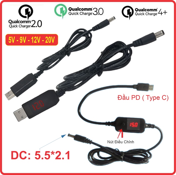 - USB - 5V/9V/12V: Mẫu này có thể điều chỉnh điện áp đầu ra lên tới 12V 1.5A