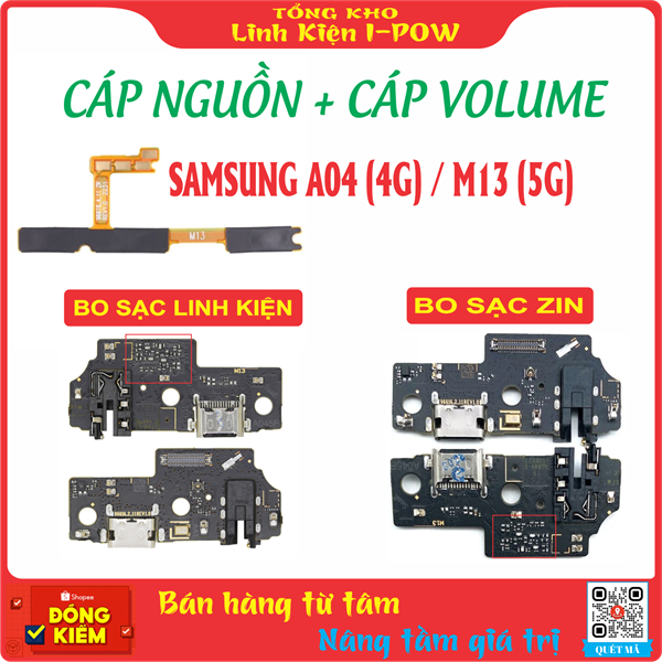 Cụm Nguồn ( on / off) , Cụm Âm lượng ( Volume) , Bo Sạc Zin Samsung A04 (4G) / M13 (5G)