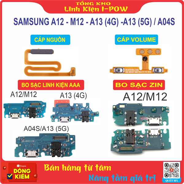 Cụm Nguồn ( on / off) , Cụm Âm lượng ( Volume) , Bo Sạc Zin Samsung A12 / M12/A13 (4G)/A13(5G)/A04S