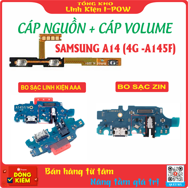 Cụm Nguồn ( on / off) , Cụm Âm lượng ( Volume) , Bo Sạc Zin Samsung A14 (4G - A145F)