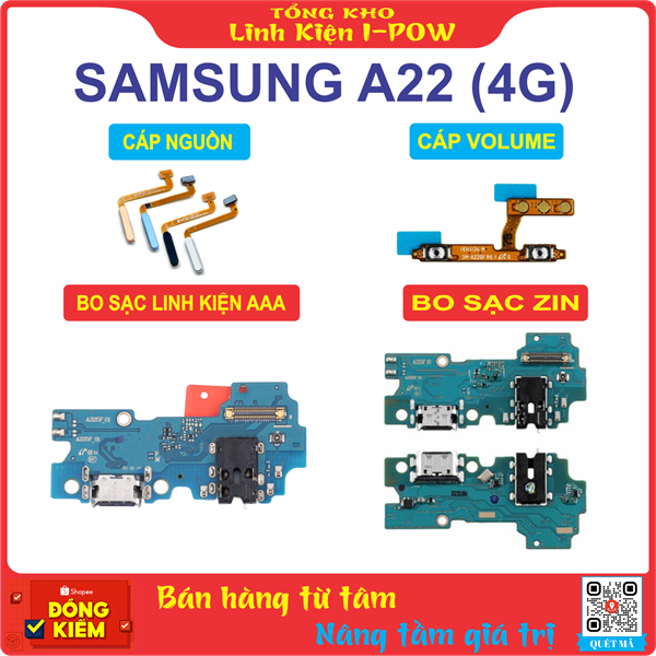 Cụm Nguồn ( on / off) , Cụm Âm lượng ( Volume) , Bo Sạc Zin Samsung A22 (4G)