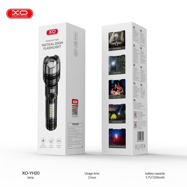 XO YH20 là mẫu đèn pin thông minh thế hệ mới, được trang bị màn hình hiển thị kỹ thuật số, chức năng zoom, cùng đèn nháy cảnh báo đỏ/xanh – cực kỳ lý tưởng cho các hoạt động ngoài trời như dã ngoại, sửa xe, cắm trại, tuần tra ban đêm hoặc sử dụng trong các tình huống khẩn cấp.