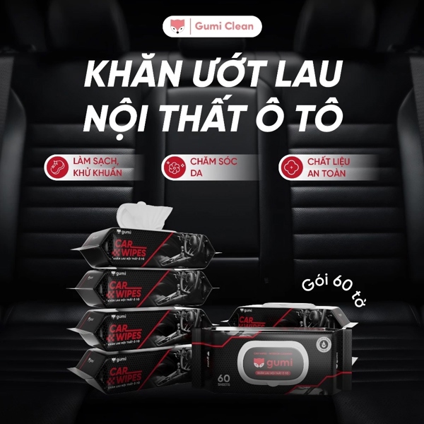 Khăn ướt lau nội thất, dưỡng da, làm bóng ô tô Gumi 60 Tờ