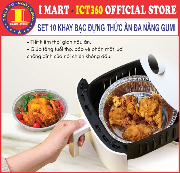 Túi 10 Khay giấy bạc Gumi đựng thức ăn, thực phẩm, lót nồi chiên không dầu, lò nướng...