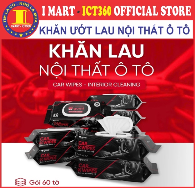 Khăn ướt lau nội thất, dưỡng da, làm bóng ô tô Gumi 60 Tờ