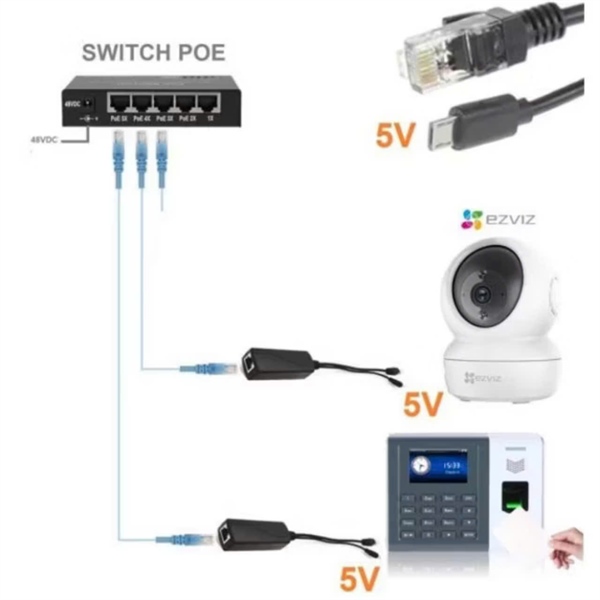 Bộ Tách Jack POE 48V Ra 12V, 5V Cho Camera IP
