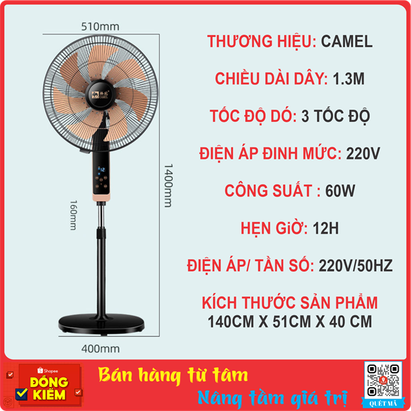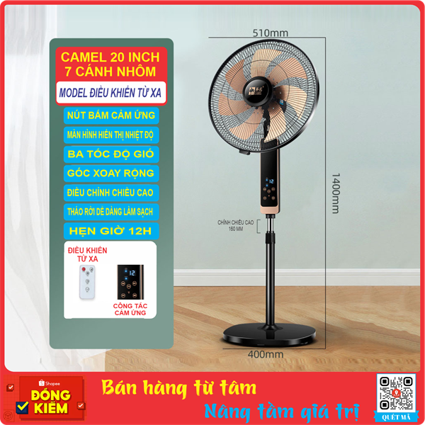 Quạt Cây Camel 20 inch, 7 Cánh Nhôm, Công Tắc Cảm ứng + Remote Điều Khiển Từ Xa