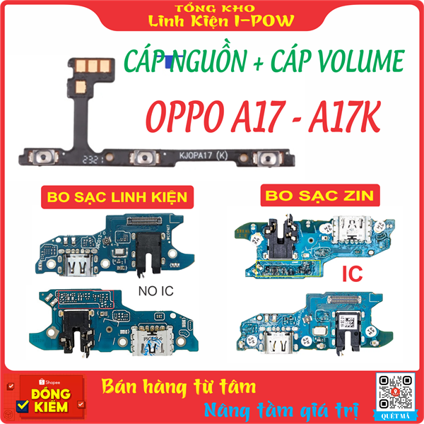 Cụm Nguồn ( on / off) , Cụm Âm lượng ( Volume) , Bo Sạc Zin OPPO A17 / A17K