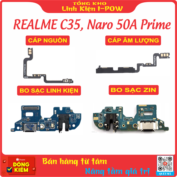 Cụm Nguồn ( on / off) , Cụm Âm lượng ( Volume) , Bo Sạc Zin Realme C35, Narzo 50A Prime