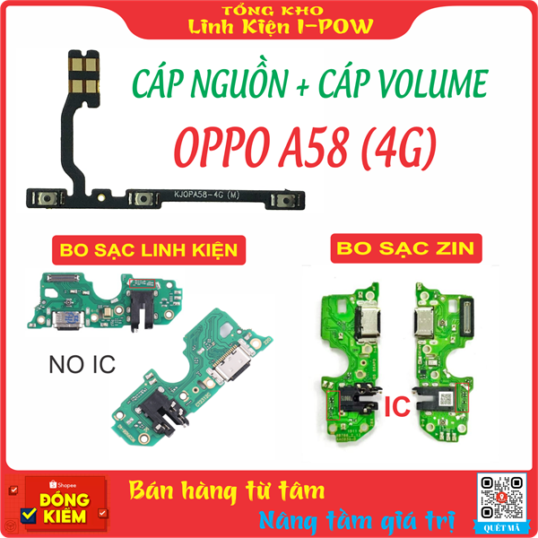 Cụm Nguồn ( on / off) , Cụm Âm lượng ( Volume) , Bo Sạc Zin OPPO A58 (4G)