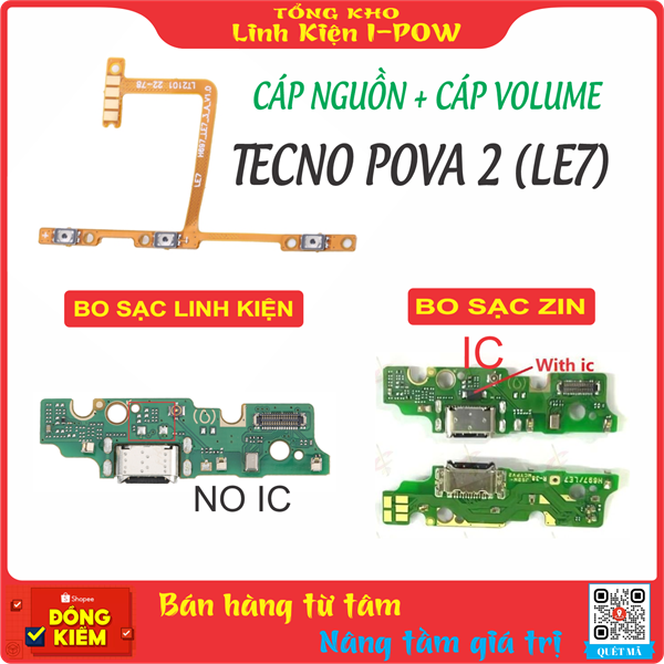 Cụm Nguồn ( on / off) , Cụm Âm lượng ( Volume) , Bo Sạc Zin Tecno Pova 2 (LE7)