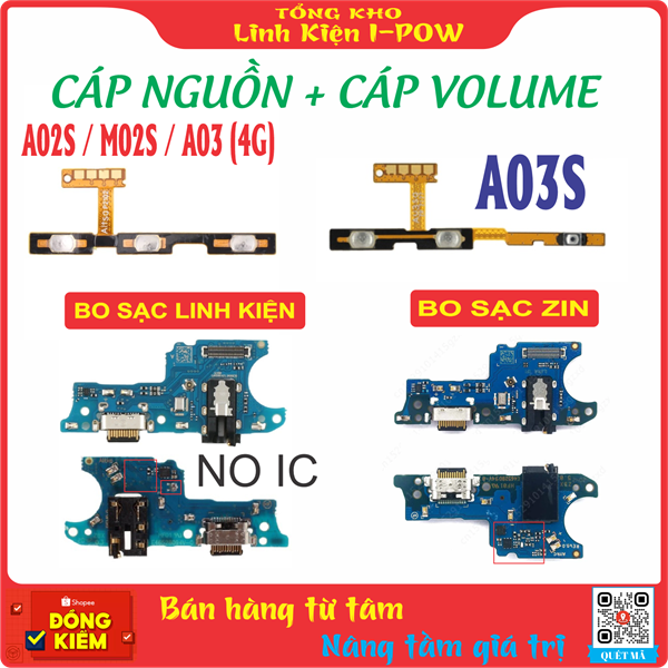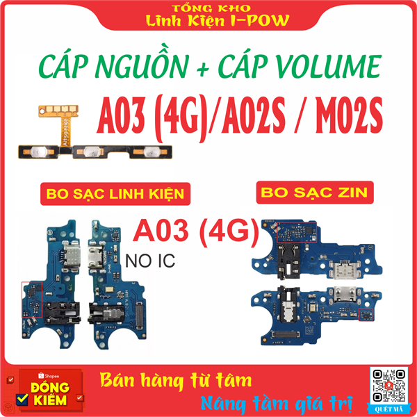 Cụm Nguồn ( on / off) , Cụm Âm lượng ( Volume) , Bo Sạc Zin Samsung A03 (4G)