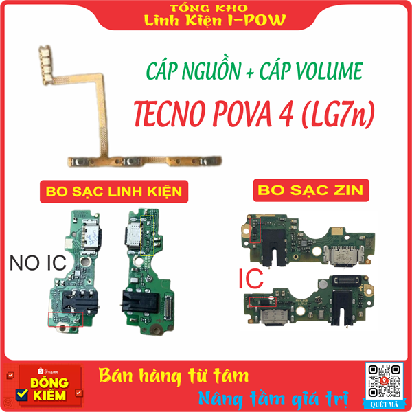 Cụm Nguồn ( on / off) , Cụm Âm lượng ( Volume) , Bo Sạc Zin Tecno Pova 4 (LG7n)