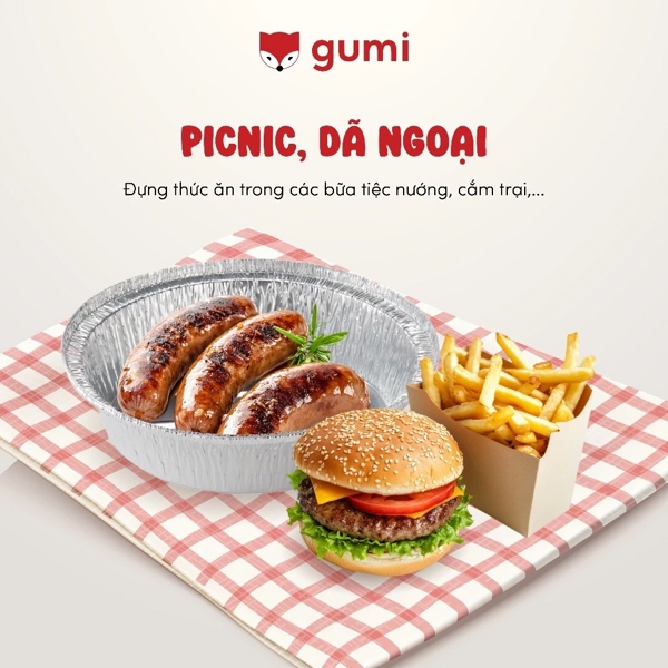- Khay giấy bạc Gumi là một sản phẩm đa năng, phù hợp để nướng bánh, nướng thịt, hải sản, rau củ… trong nồi chiên hoặc lò nướng.