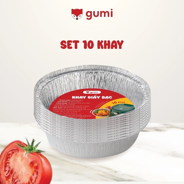 Túi 10 Khay giấy bạc Gumi đựng thức ăn, thực phẩm, lót nồi chiên không dầu, lò nướng...