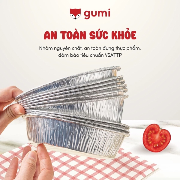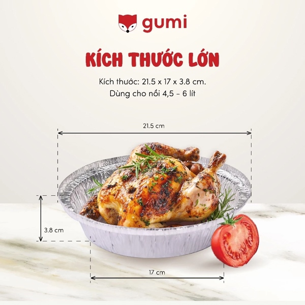 - Với kích thước chuẩn là 21,5*17*3,8 cm, khay giấy bạc Gumi vừa vặn với đa số các loại nồi chiên không dầu phổ biến hiện có trên thị trường.