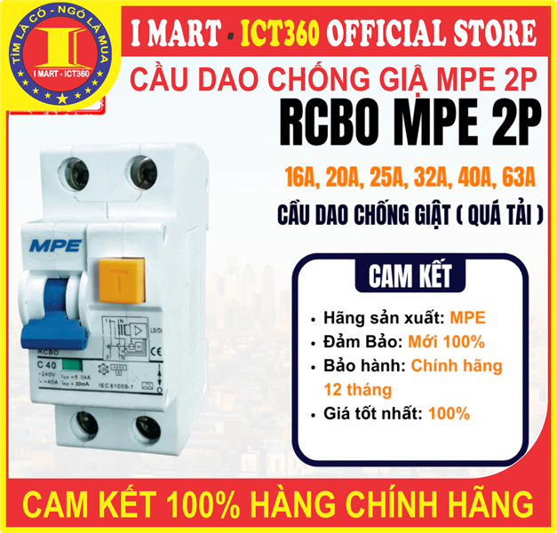 Cầu dao RCBO bảo vệ dòng dò và quá tải, Aptomat MPE 2 Cực (30mA)