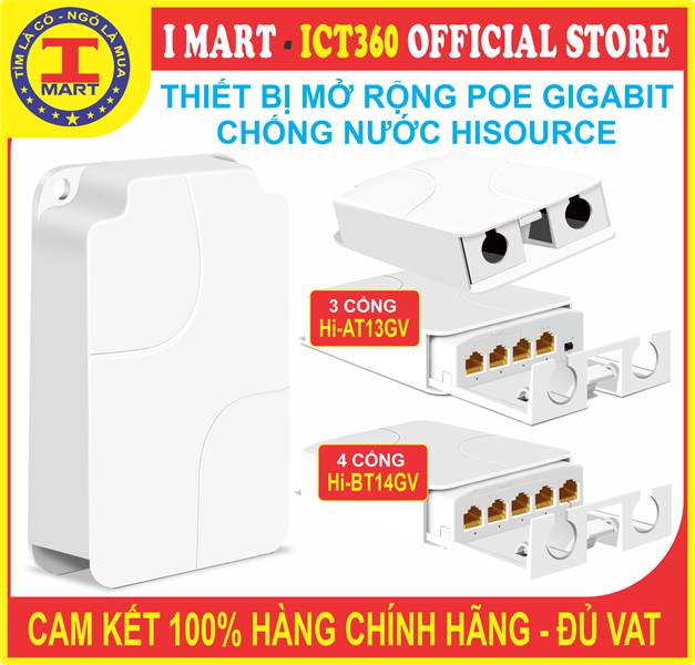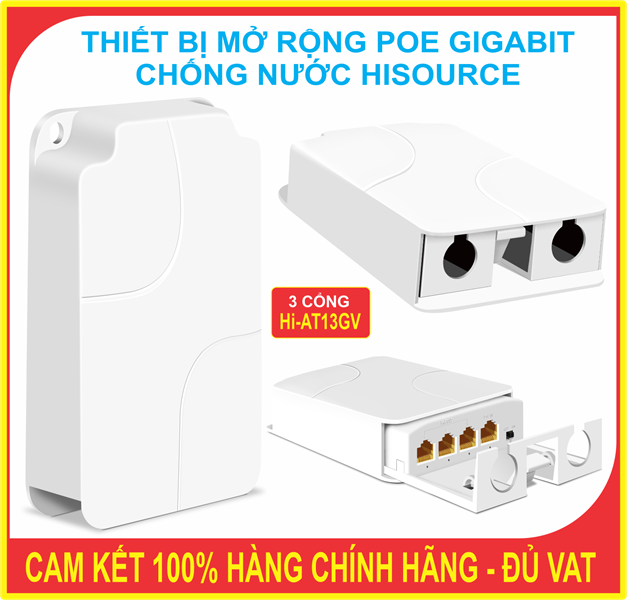 Bộ mở rộng POE chống nước Hisource Full Gigabit AI 3 Cổng, 4 Cổng