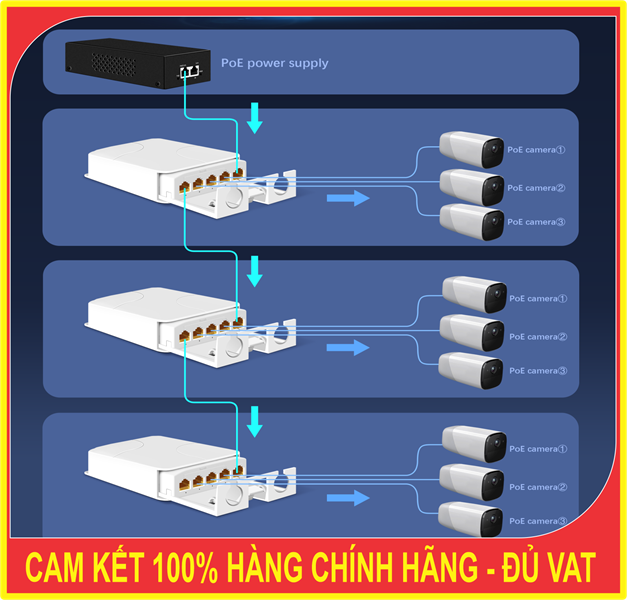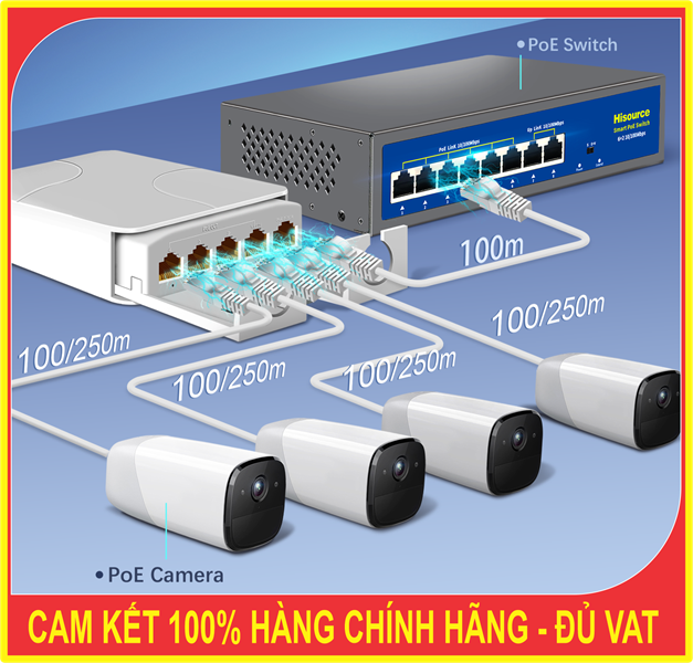 Tăng khoảng cách PoE: Giữ tín hiệu ổn định cho các thiết bị đặt xa đến 100 m từ nguồn chính.