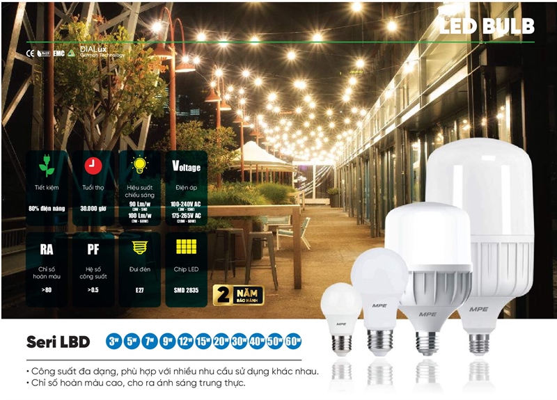 TÍNH NĂNG NỔI BẬT BÓNG ĐÈN LED BULB MPE LBD 30W
