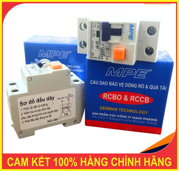 CB cầu dao tự động chống giật và quá tải RCBO MPE 16A, 20A, 25A, 32A, 40A, 63A chính hãng