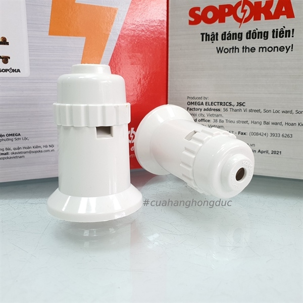 Đui đèn lõi sứ chịu nhiệt chịu bão ren xoáy E27 ĐB500W SOPOKA