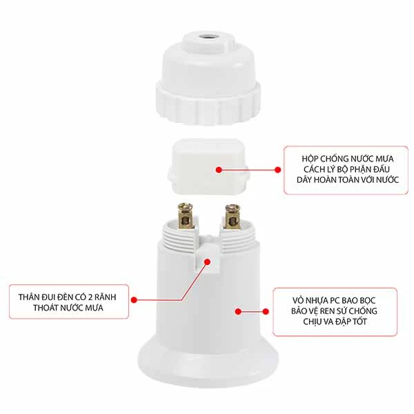 - Vỏ nhựa PC bao bọc bảo vệ ren sứ, chống chịu va đập