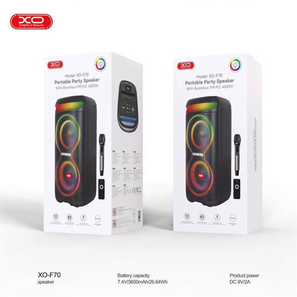 Loa Bluetooth XO F70, Led RGB Kèm 1 Micro Không dây ( 40W)